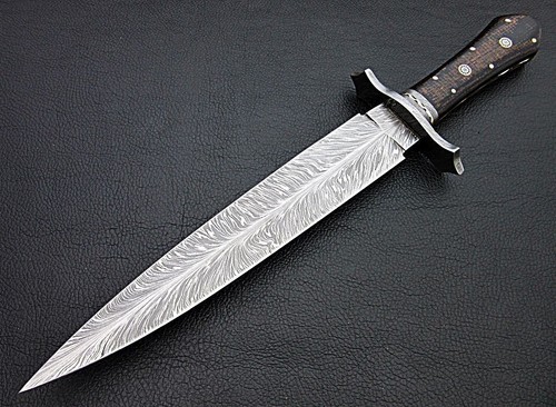 Feather Pattren Custom Handmade Damascus Steel Hunting Dagger Knife 14 5 Ebay